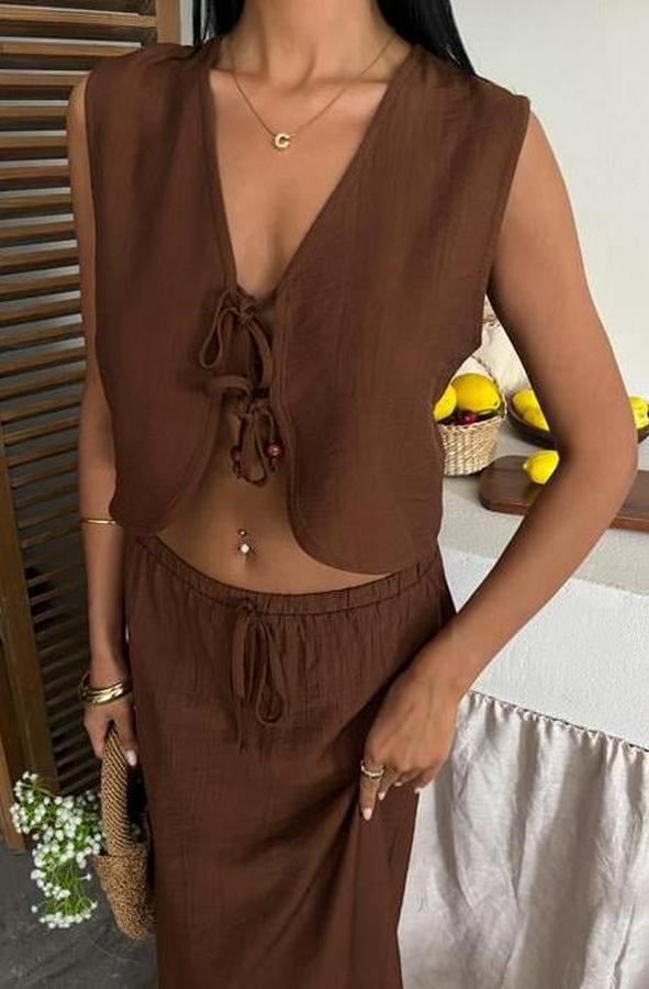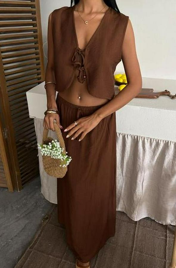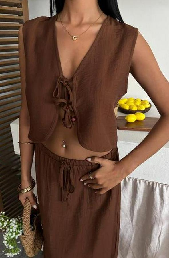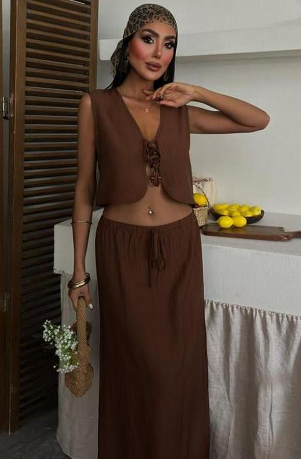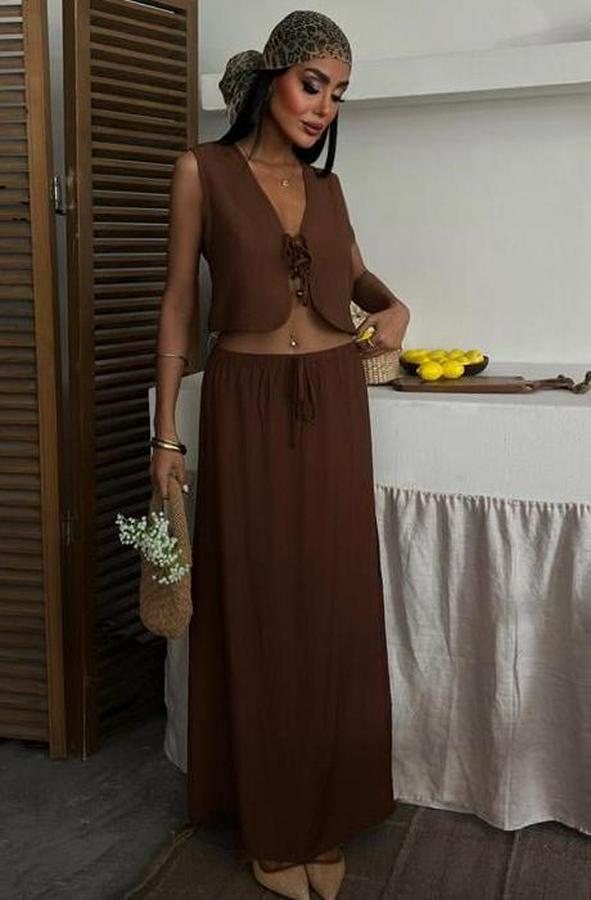 Yelek Önden Bağlamalı Uzun Etekli Takım 10192
