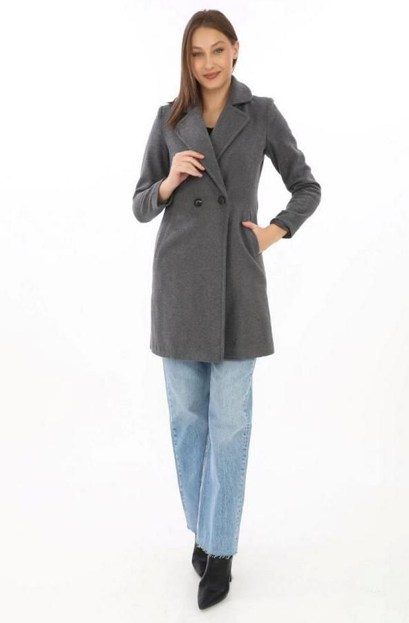 Düğmeli İçi Astarlı Kaşmir Kaşe Kaban - Füme