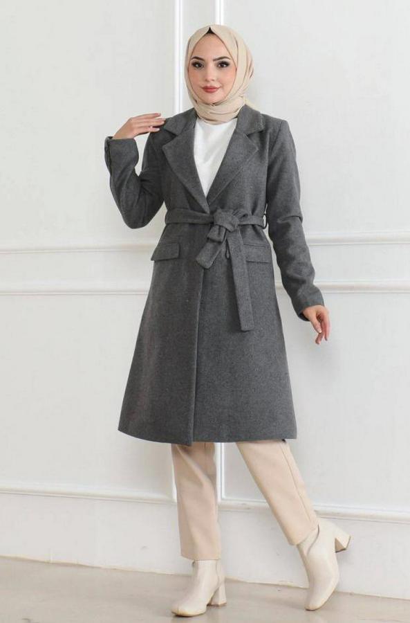 Düğmeli İçi Astarlı Kaşmir Kaşe Kaban - Boyalı Gri