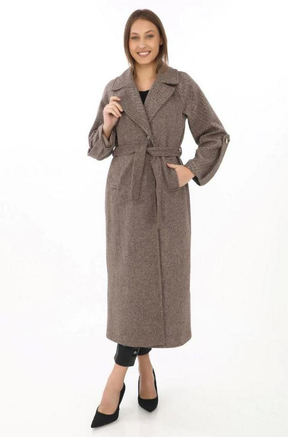 Kolu Apoletli Astarlı Kaşmir Kaşe Kaban - Vizon