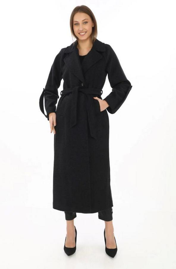 Kolu Apoletli Astarlı Kaşmir Kaşe Kaban - Siyah