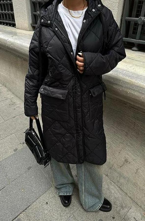 Fermuar Ve Kapşonlu Uzun Kapitone Mont 7062