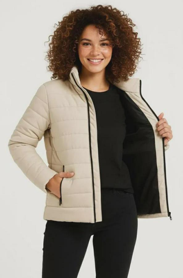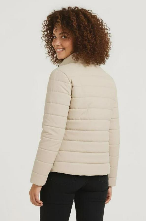 Mikro Su İtici Kapitone Baskılı Astarlı Fermuarlı Bomber Mont - Bej