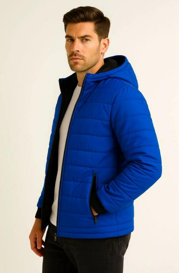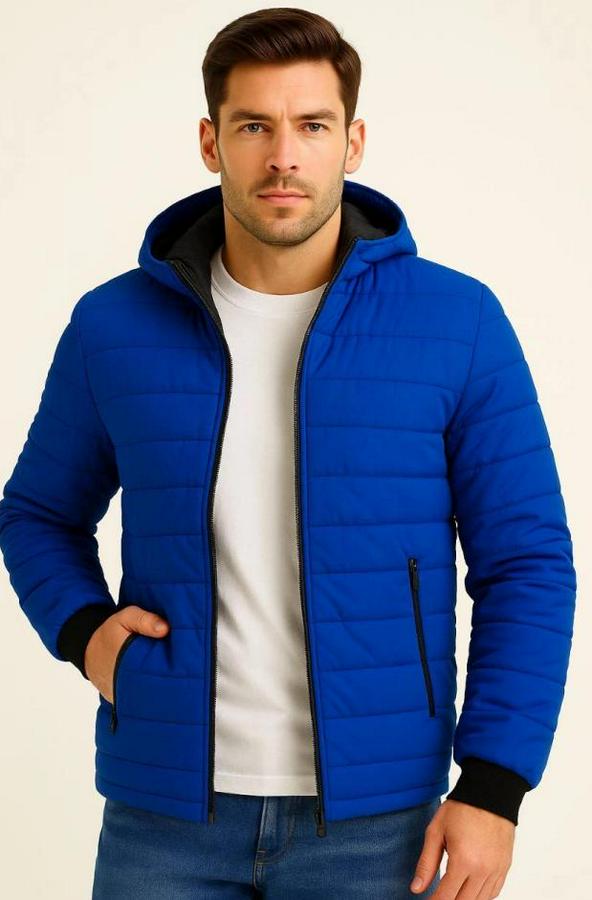 Erkek Şişme Kapüşonlu Fermuarlı Mont Su Itici Kapitone Astarlı Kumaş Cepli Kışlık Rahat Kalıp - Saks Mavisi