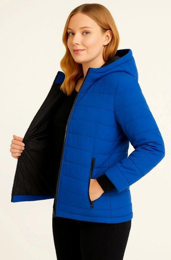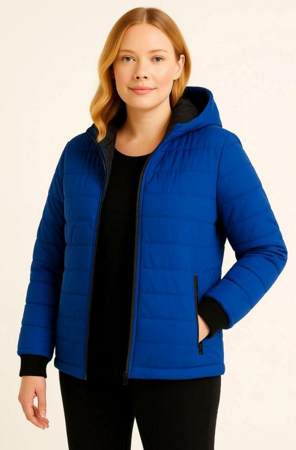 Şişme Kapüşonlu Fermuarlı Mont Su Itici Kapitone Astarlı Kumaş Cepli Kışlık Rahat Kalıp - Saks Mavisi