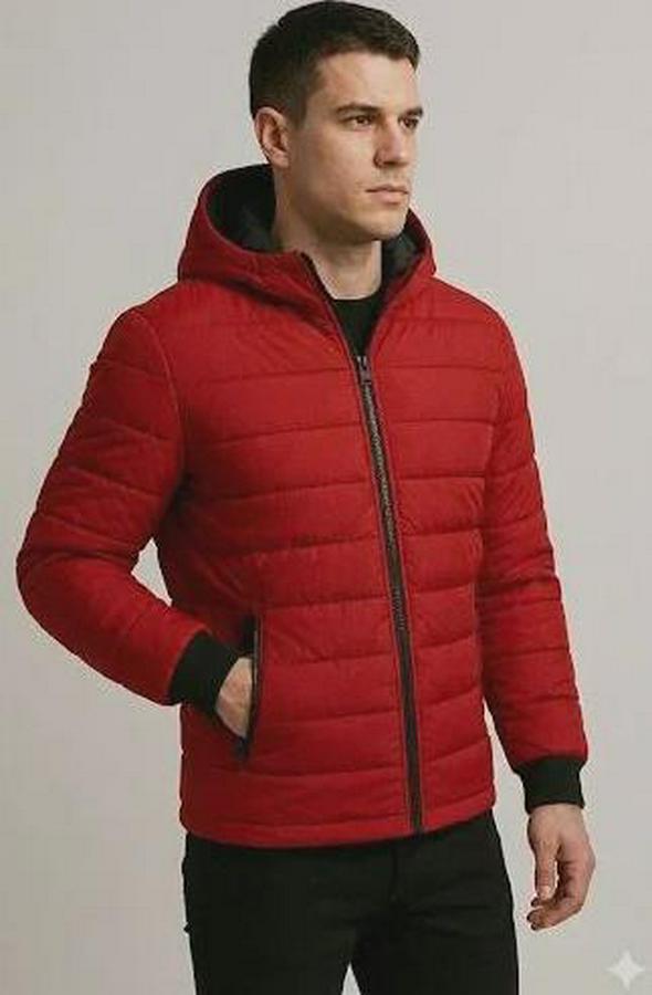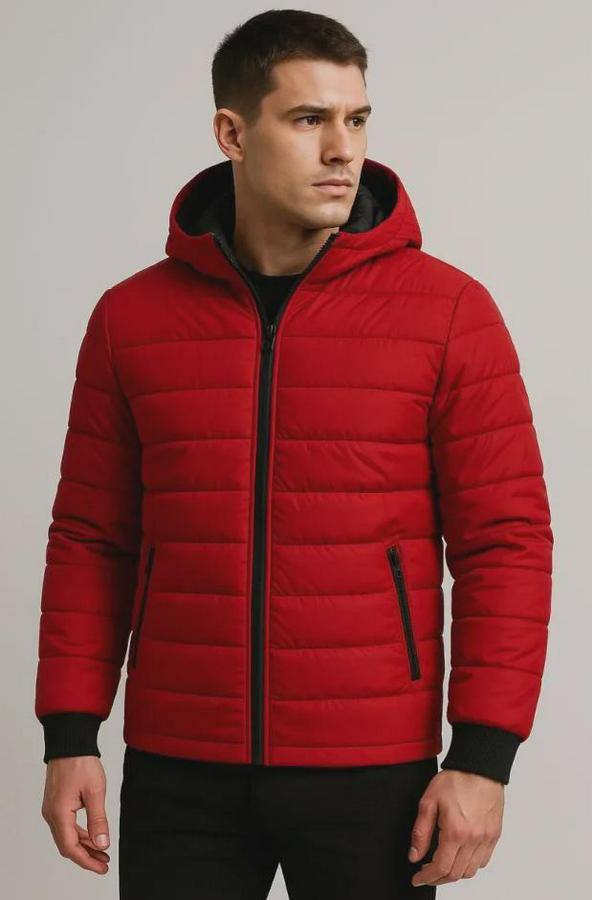 Erkek Şişme Kapüşonlu Fermuarlı Mont Su Itici Kapitone Astarlı Kumaş Cepli Kışlık Rahat Kalıp - Kırmızı