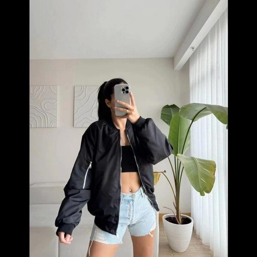 Unisex Içi Astarlı Düz Bomber Ceket