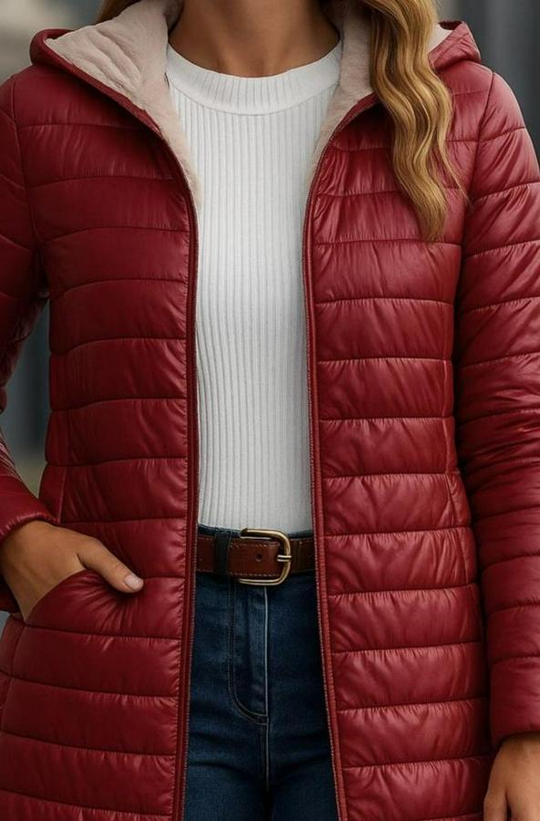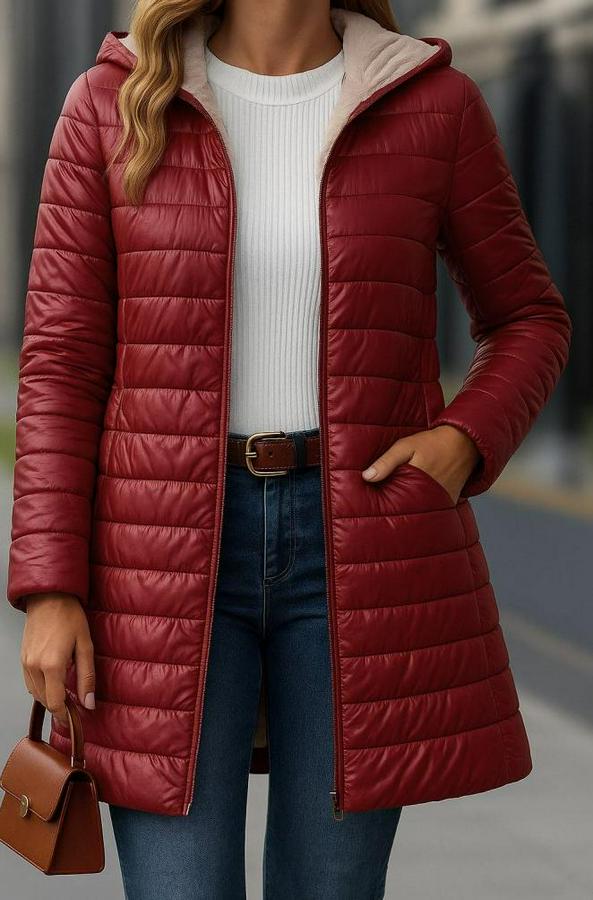 Kadın Uzun Kollu Kapşonlu Cep Detaylı Fermuarlı Orta Boy Mont