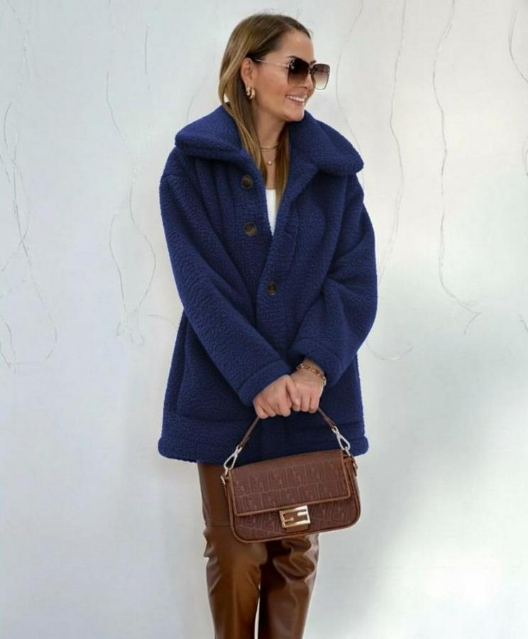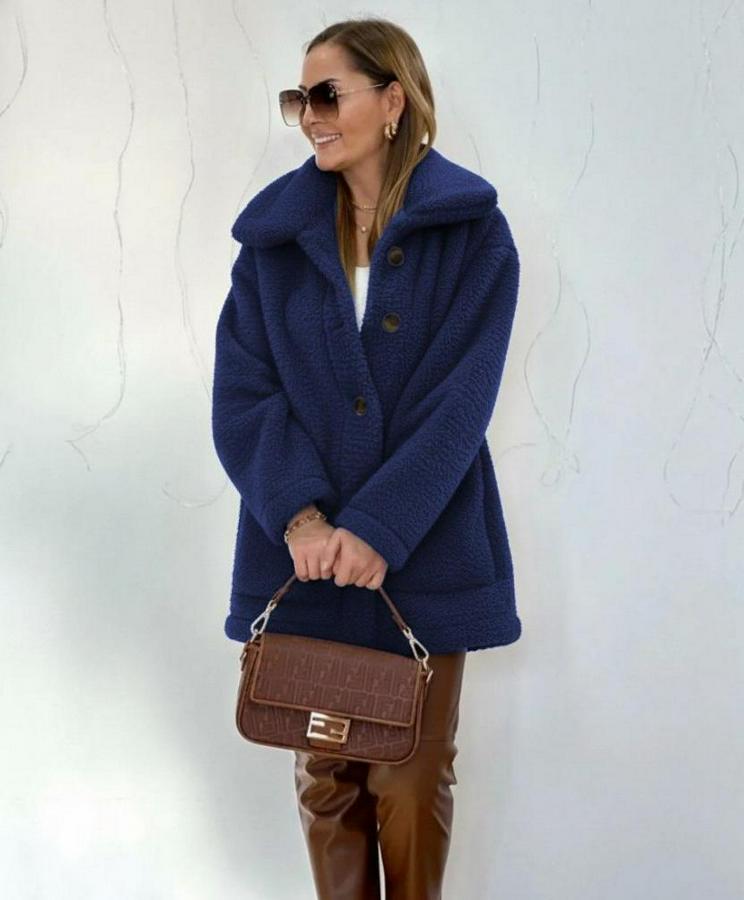 Kadın Uzun Kollu Yakalı önden Düğmeli Welsoft Kaban