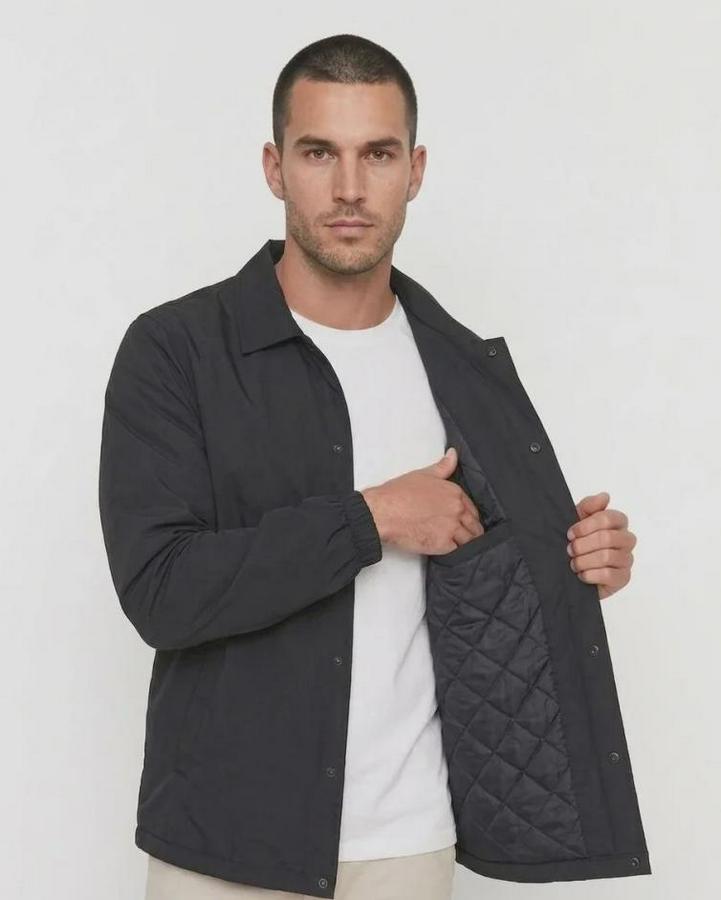 Erkek Yağmur İtici İç Astarlı Çıtçıtlı İç Cepli Dış Cepli Mevsimlik Mont - Siyah