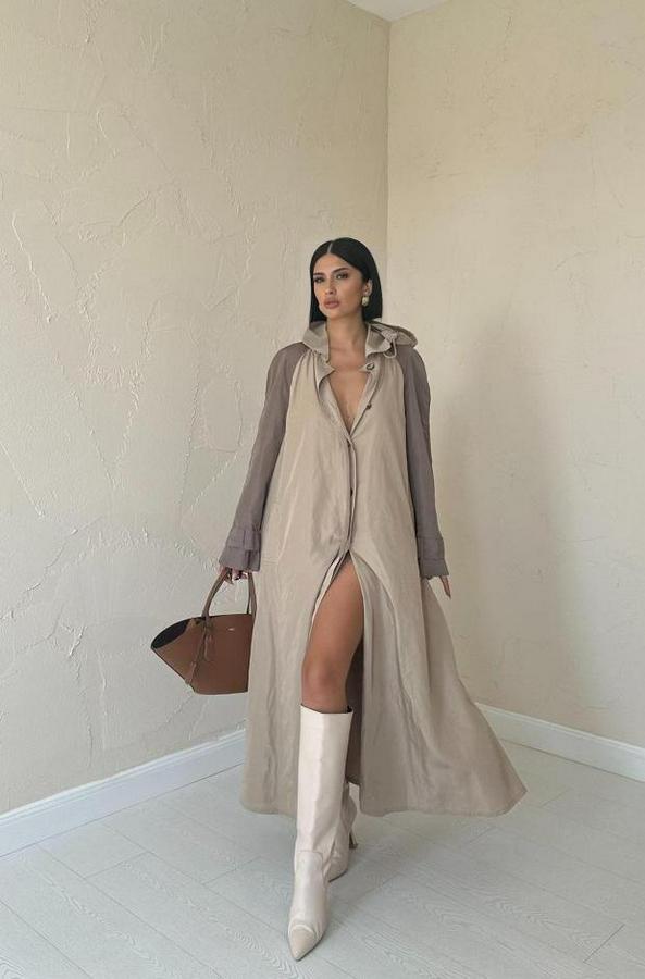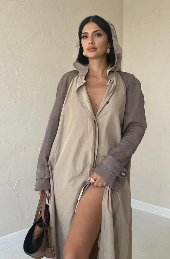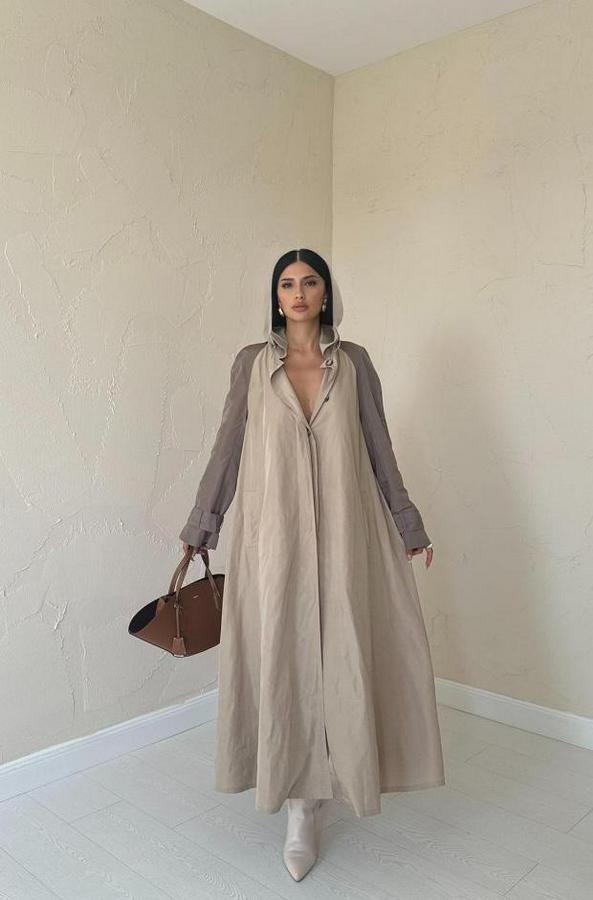 Taba Kapüşonlu Uzun Trençkot
