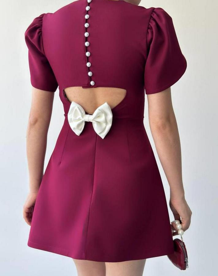 Alka Incili Fiyonk Detay Elbise