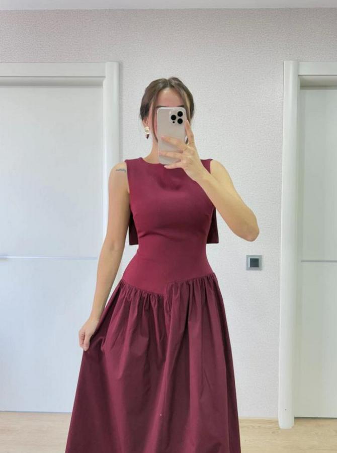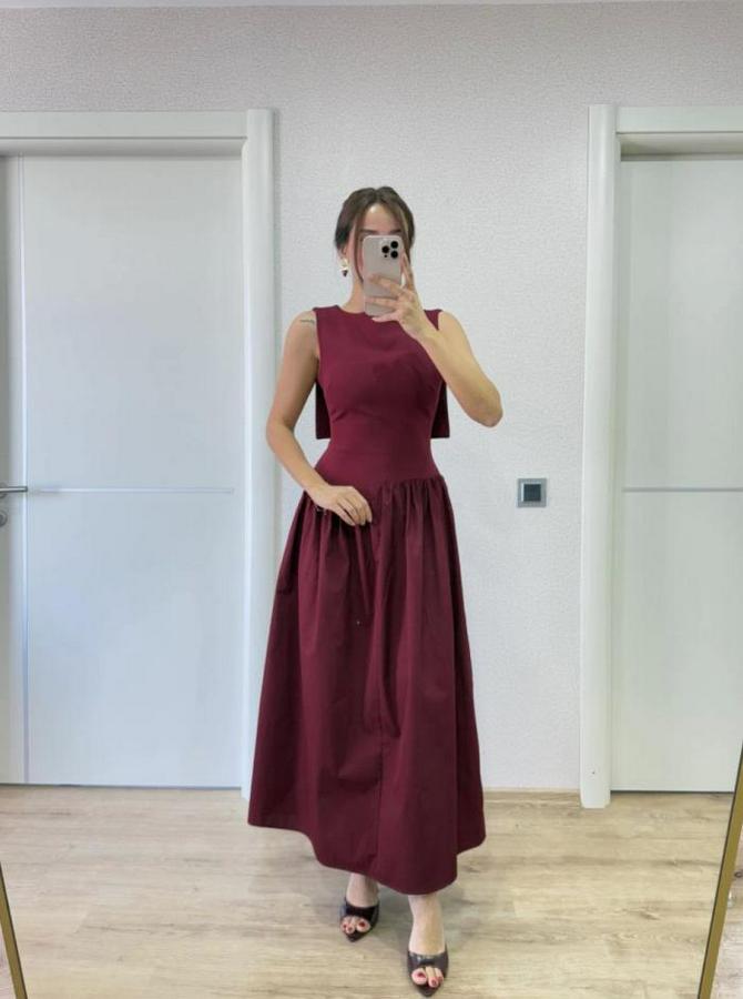 AnasayfaTüm ÜrünlerElbiseArkası Kanatlı Uzun Elbise- Bordo