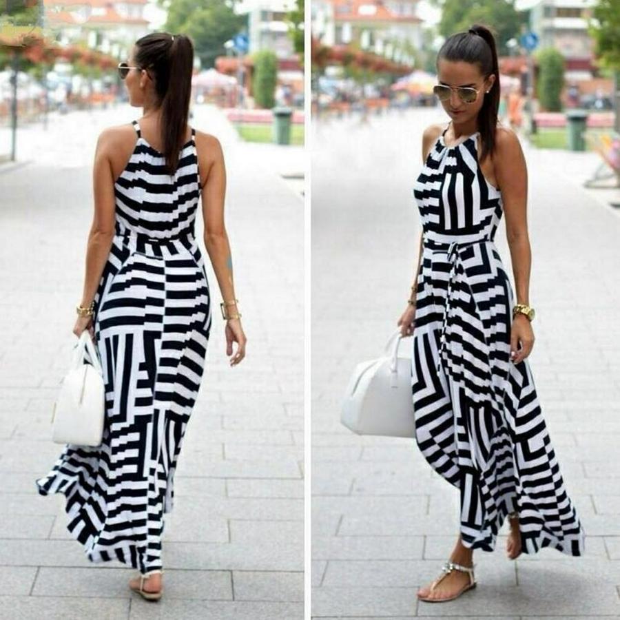 Kadın Askılı Belden Bağlamalı Geometrik Desen Krep Elbise
