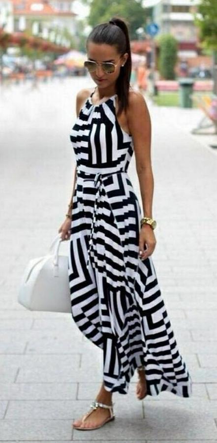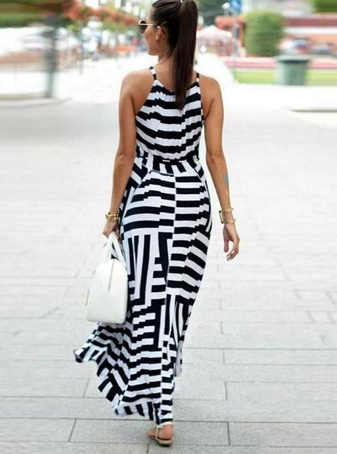 AnasayfaTüm ÜrünlerElbiseAskılı Belden Bağlamalı Geometrik Desen Krep Elbise