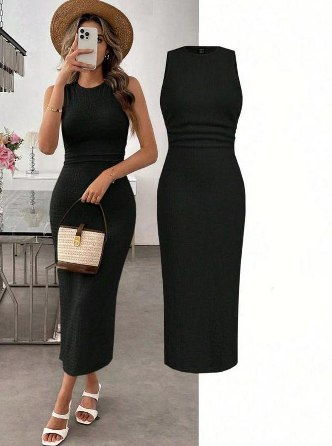 Kadın Askılı Bisiklet Yaka Beli Büzgülü Uzun Bürümcük Elbise