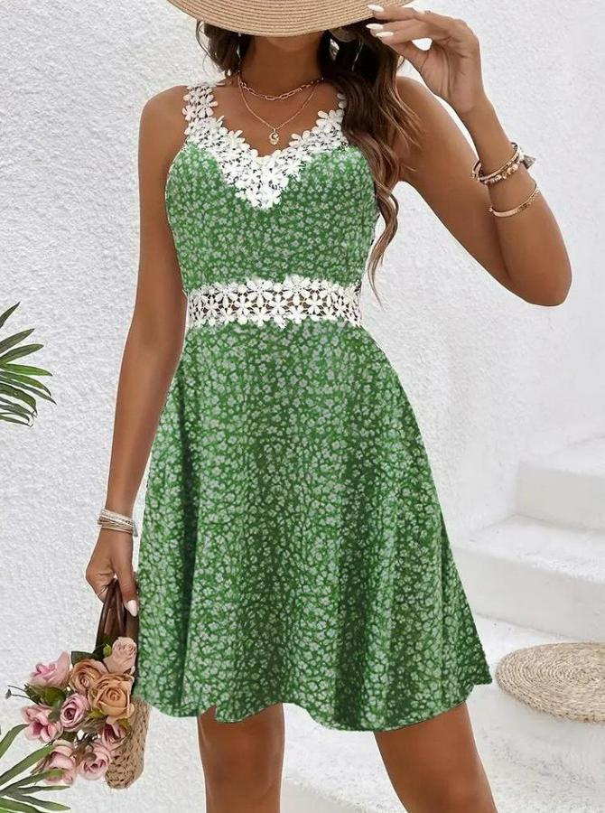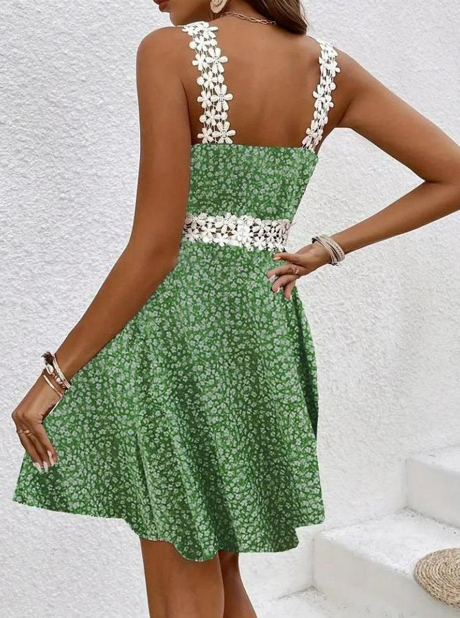 Askılı Dantel Yakalı Çiçek Desenli Süprem Elbise
