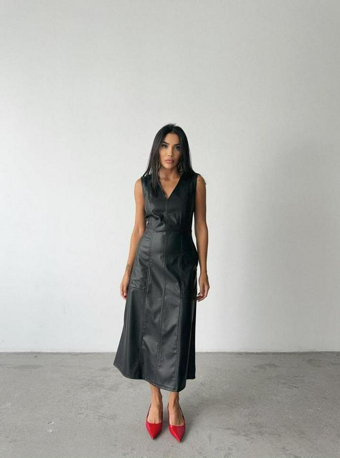 AnasayfaTüm ÜrünlerElbiseAskili Deri Elbise Şanel Boy