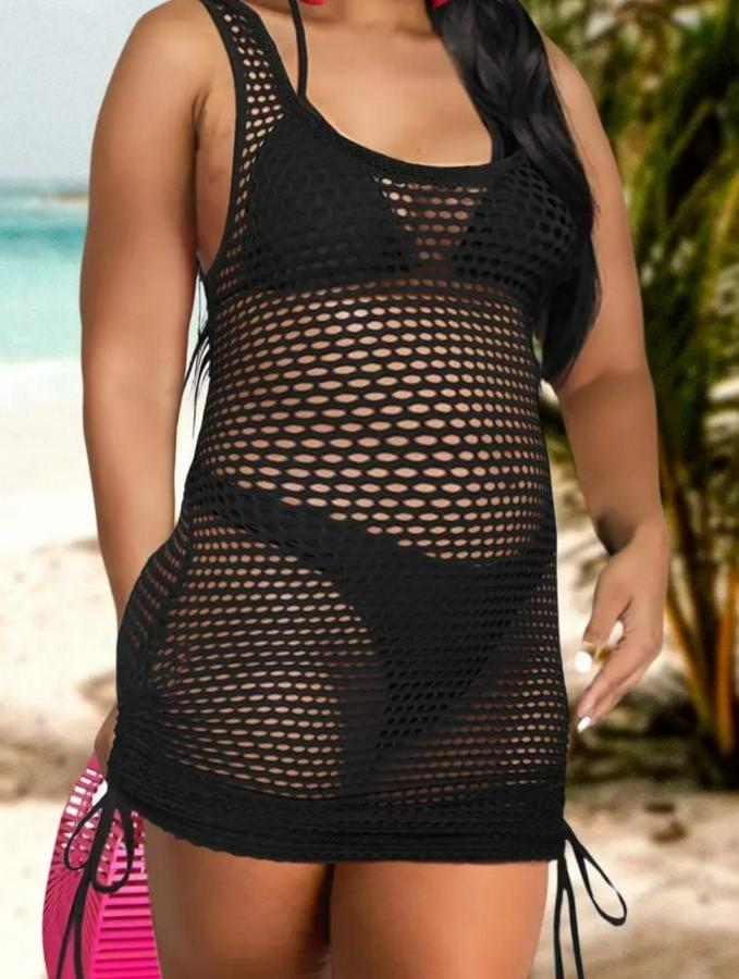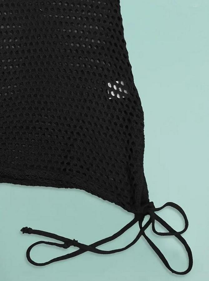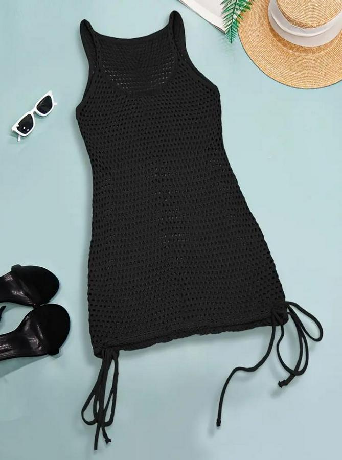 AnasayfaTüm ÜrünlerElbiseAskılı Eteği Büzgü Bağlama Detay Delikli Örme Triko Pareo Elbise