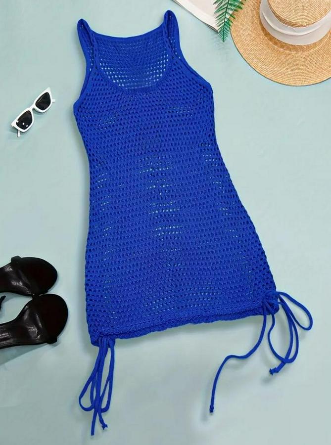 AnasayfaTüm ÜrünlerElbiseAskılı Eteği Büzgü Bağlama Detay Delikli Örme Triko Pareo Elbise