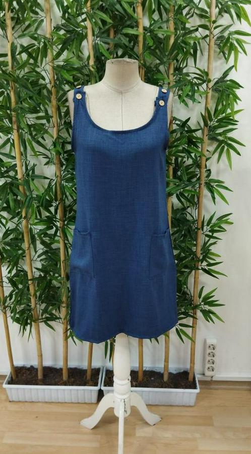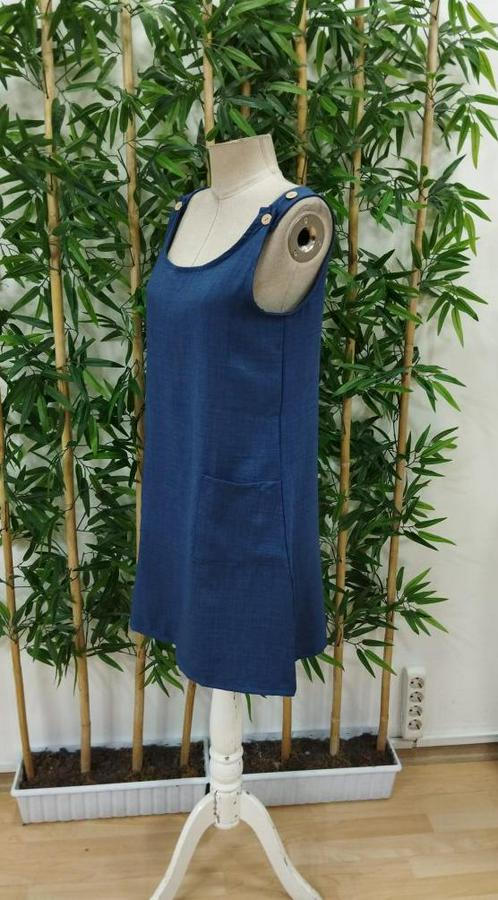 AnasayfaTüm ÜrünlerElbiseAskılı Omuzlardan Düğmeli Yuvarlak Yaka Cepli Keten Elbise