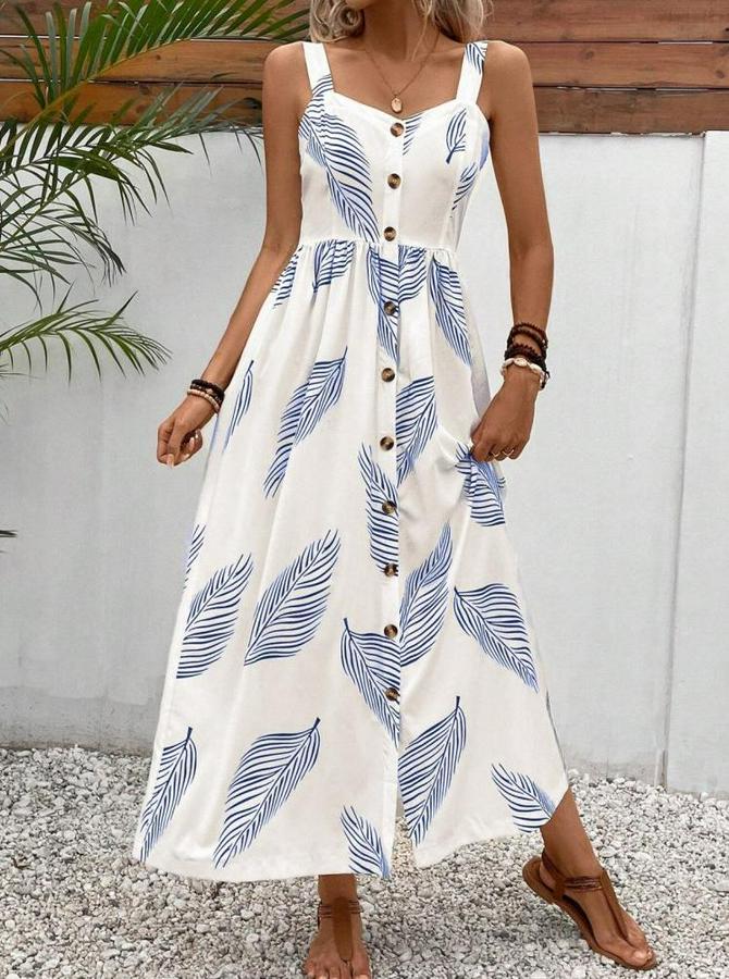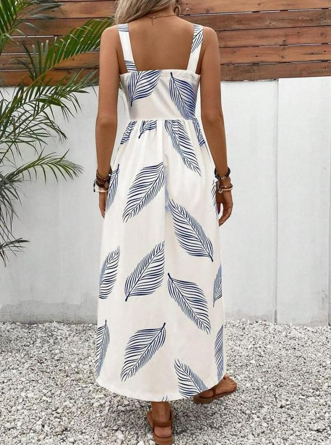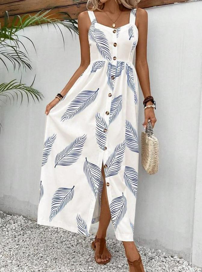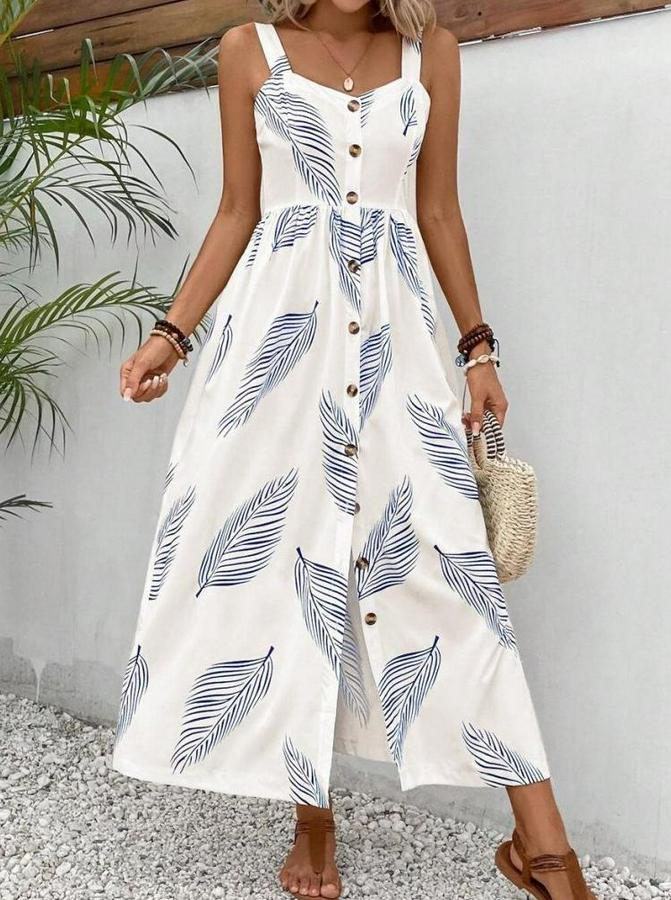 AnasayfaTüm ÜrünlerElbiseAskılı Önden Düğmeli Yaprak Desenli Uzun Süprem Elbise