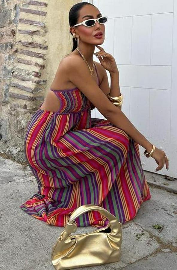 AnasayfaTüm ÜrünlerElbiseAskılı Pile Detaylı Renkli Maxi Elbise 2748