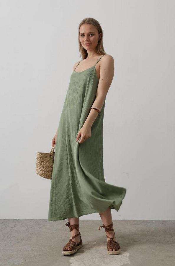 AnasayfaTüm ÜrünlerElbiseAskılı Uzun Çan Elbise