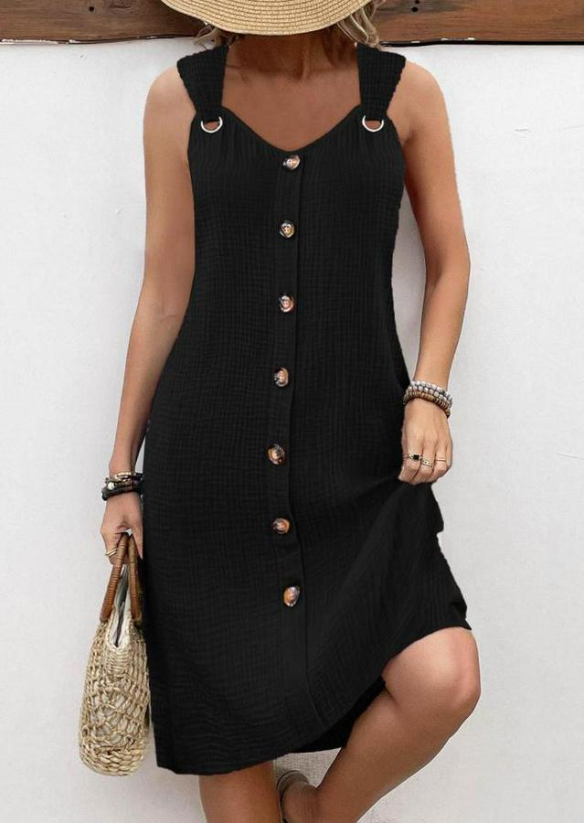 Askılı V Yakalı Önden Düğmeli Narin Elbise