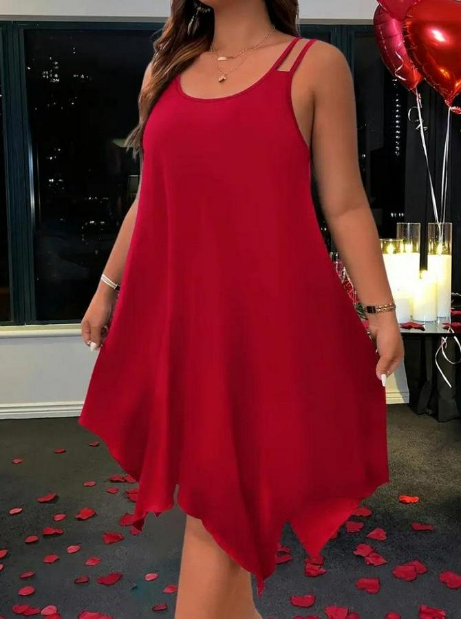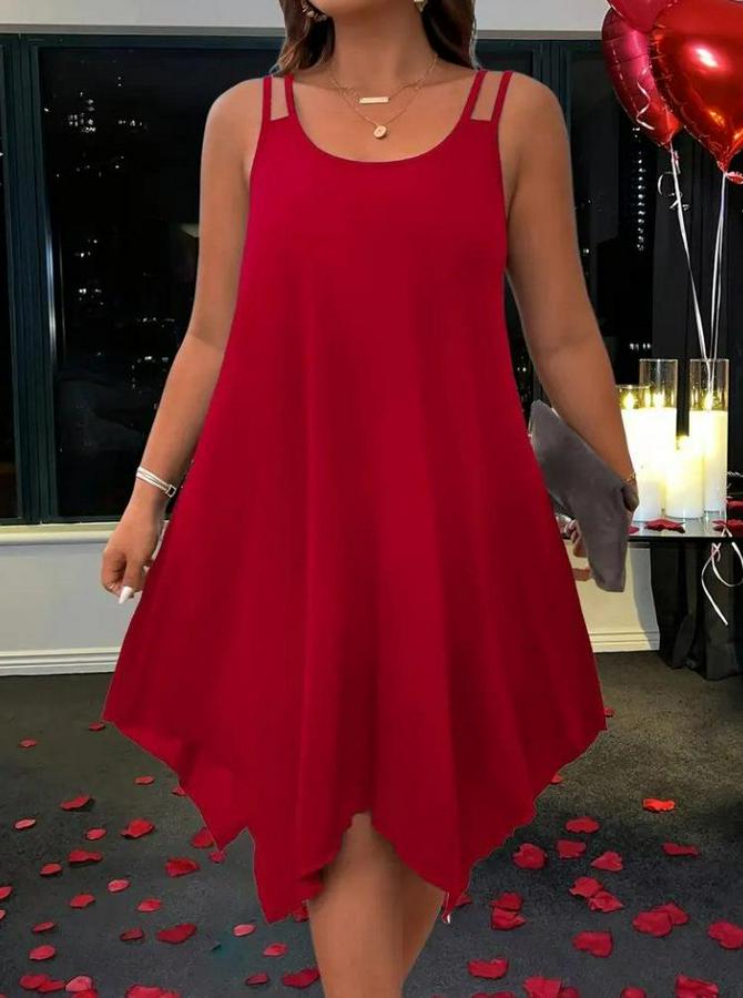 Askılı Yuvarlak Asimetrik Kesim Detaylı Viskon Elbise