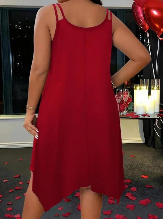 Kadın Askılı Yuvarlak Asimetrik Kesim Detaylı Viskon Elbise