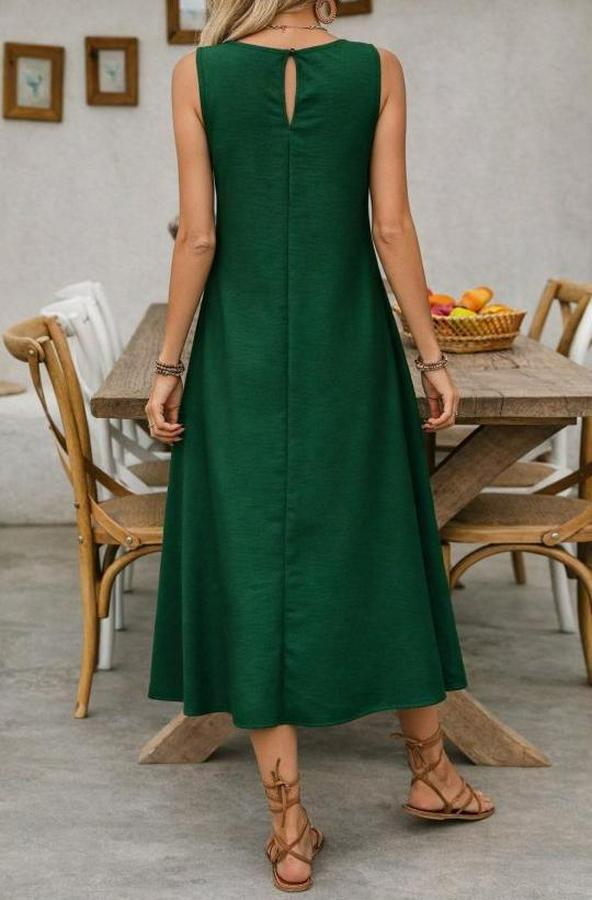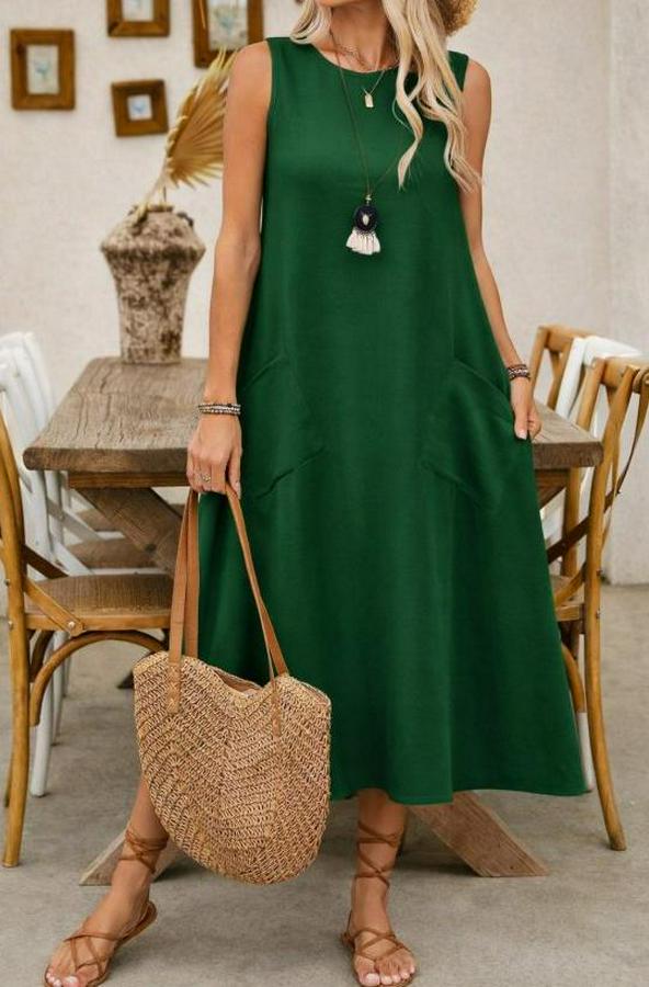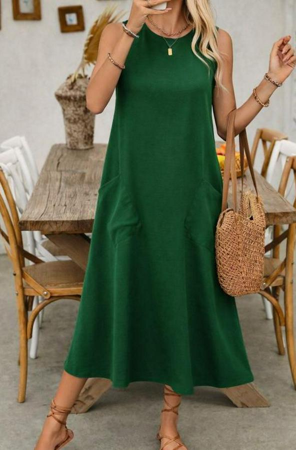 AnasayfaTüm ÜrünlerElbiseAskılı Yuvarlak Yakalı Kıloş Cepli Uzun Elbise