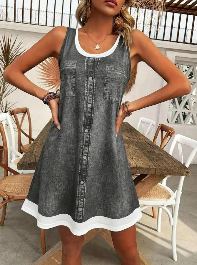 AnasayfaTüm ÜrünlerElbiseAskılı Yuvarlak Yakalı Kot Görünümlü Kısa Süprem Elbise