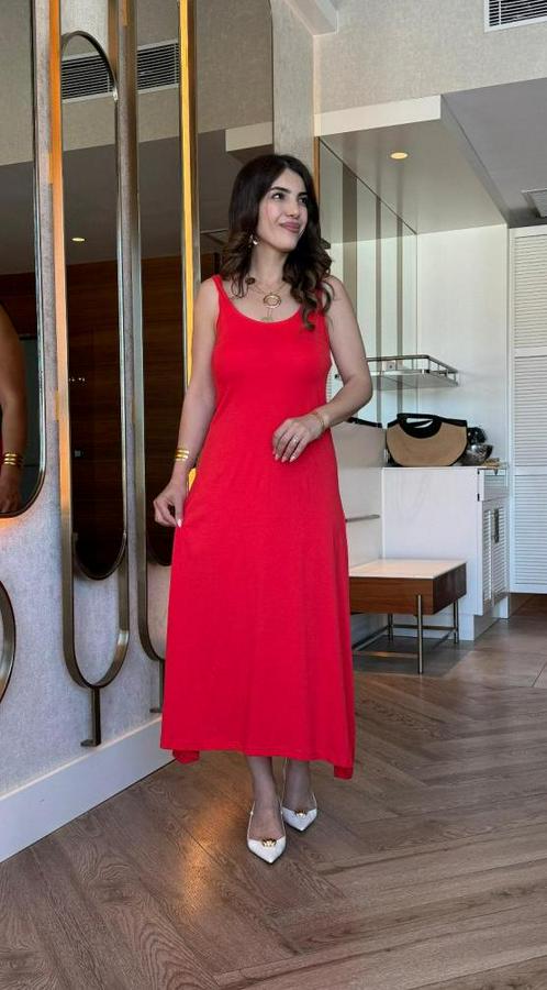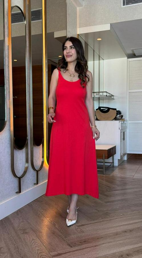 Askılı Yuvarlak Yakalı Viskon Elbise