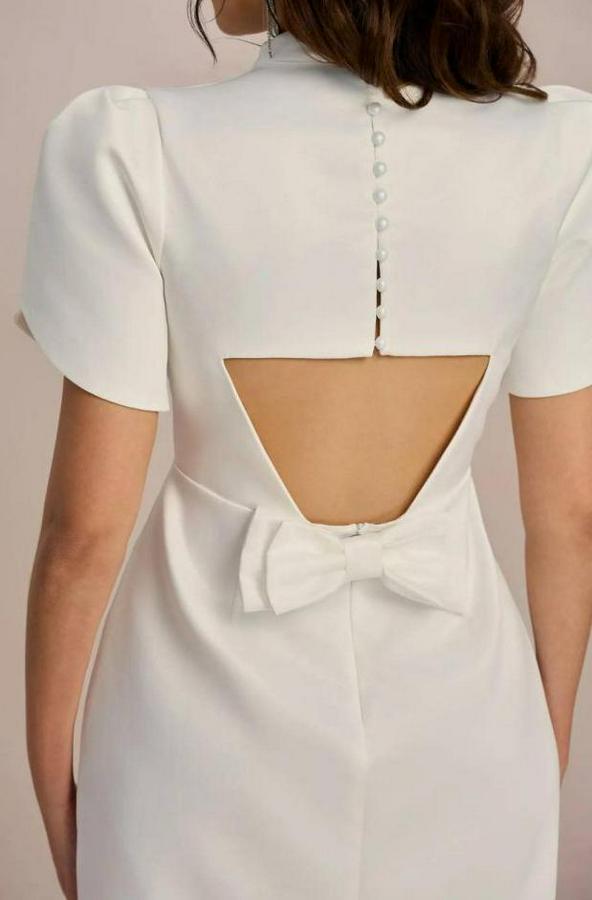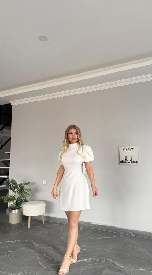 AnasayfaTüm ÜrünlerElbiseAtlas Kumaş Iç Astarlı Gizli Fermuarlı Inci Düğme Detaylı Mini Elbise