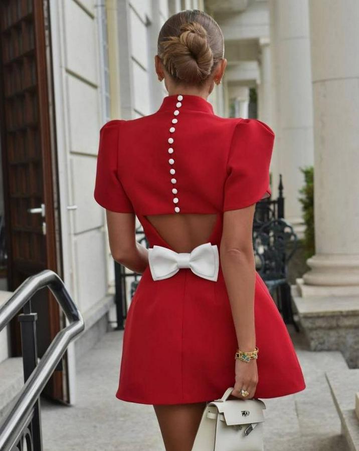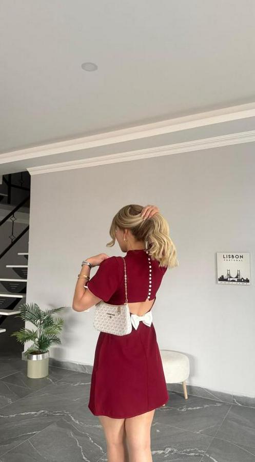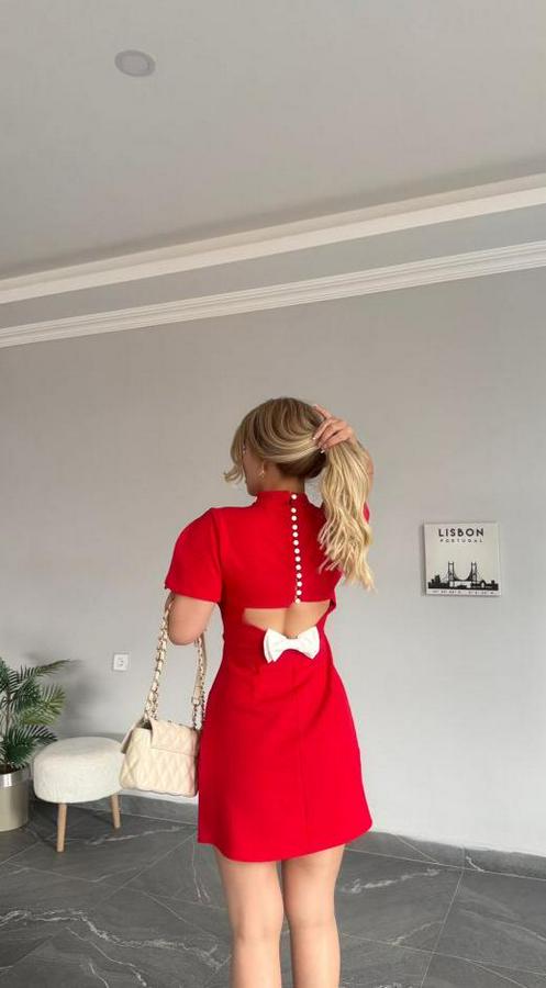 AnasayfaTüm ÜrünlerElbiseAtlas Kumaş Iç Astarlı Gizli Fermuarlı Inci Düğme Detaylı Mini Elbise