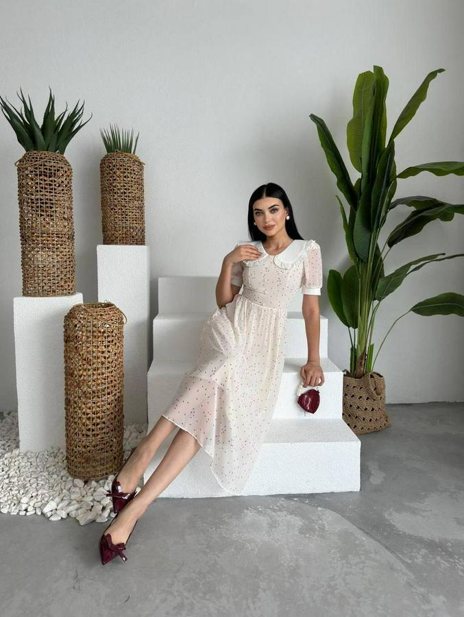 AnasayfaTüm ÜrünlerElbiseAversa Inci Detay Şifon Elbise