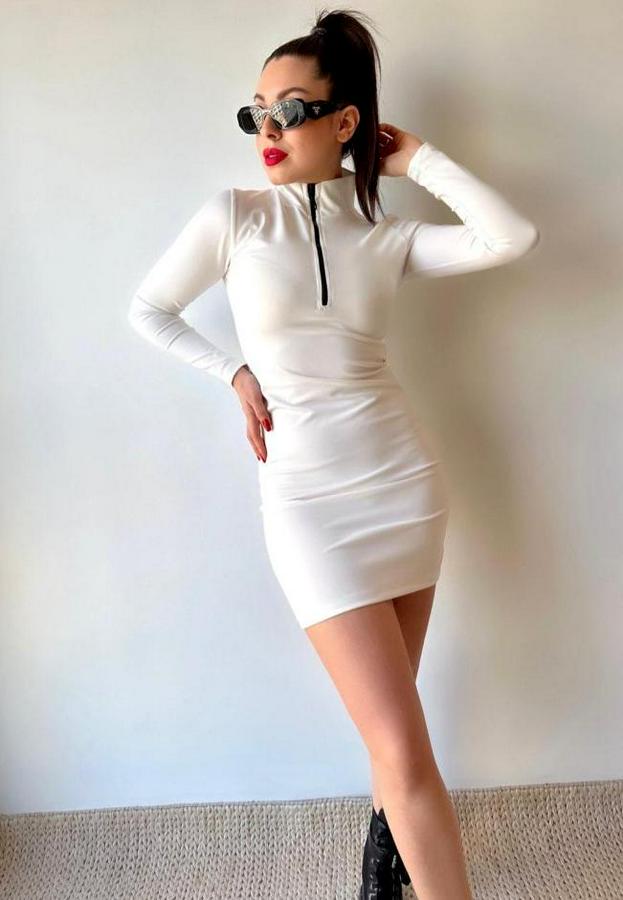 Kadın Balıkçı Yaka Fermuar Detay Mini Elbise