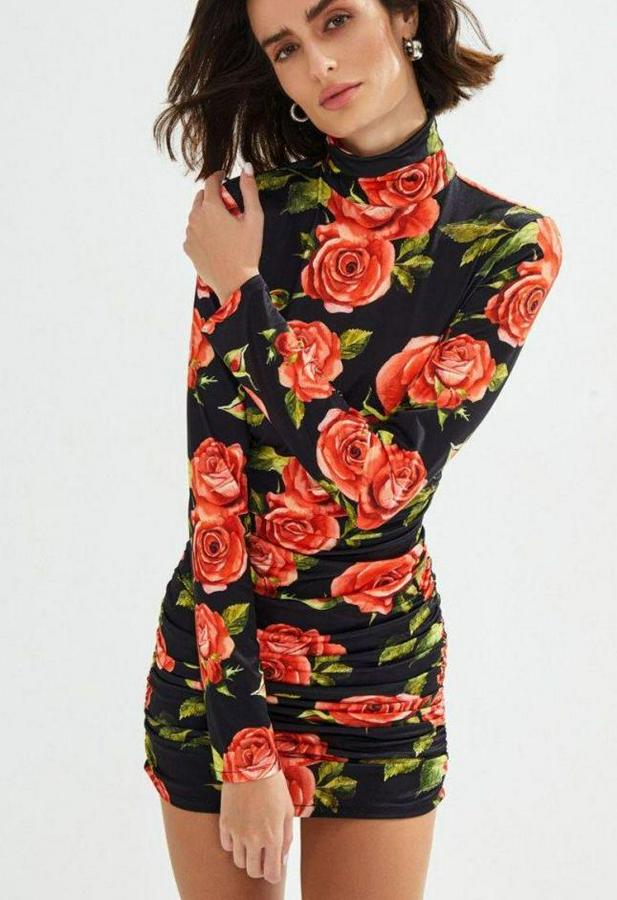 AnasayfaTüm ÜrünlerElbiseBalıkçı Yaka Gül Baskılı Fırsat Ürün Mini Elbise