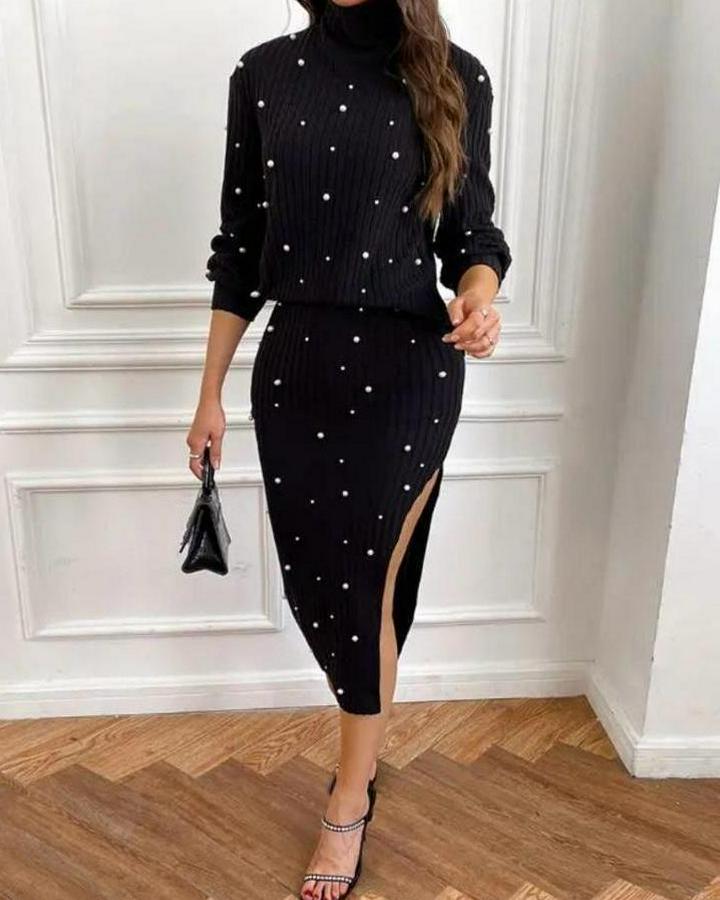 Balıkçı Yaka Inci Detay Kazak Ve Yırtmaç Detay Etek Fırsat Ürün Ikili Takım