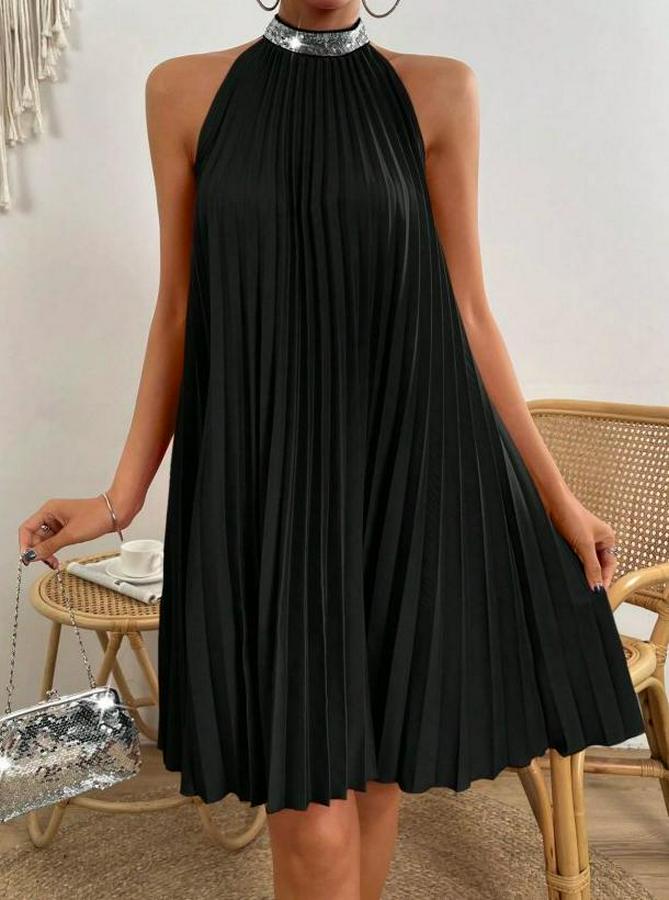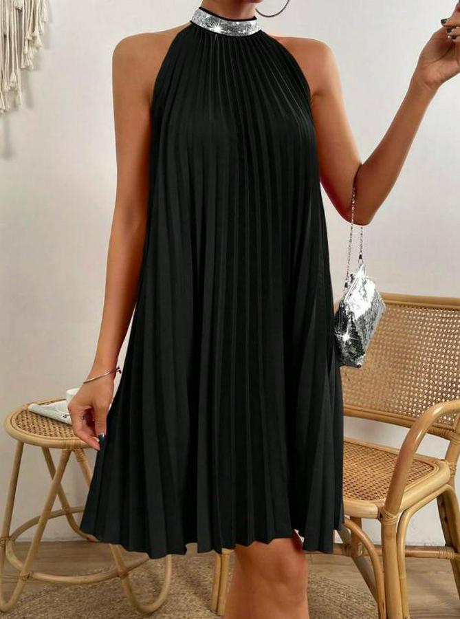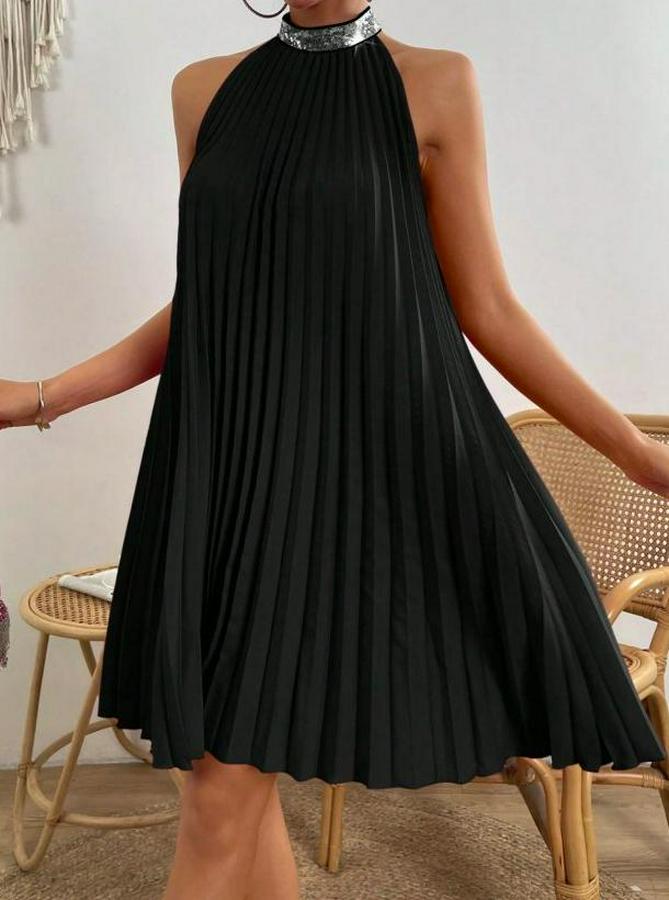 Kadın Balıkçı Yaka Omuzlardan Açık Pılelı Kısa Janjan Krep Elbise