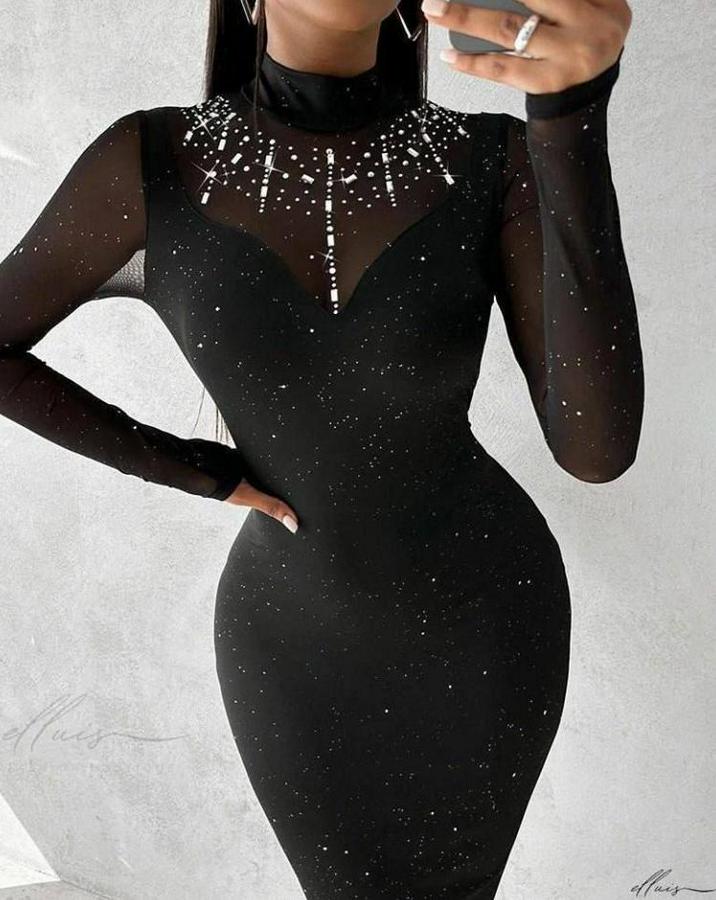 Balıkçı Yaka Uzun Kollu Rahat Param Ve Taş Detay Midi Boy Elbise