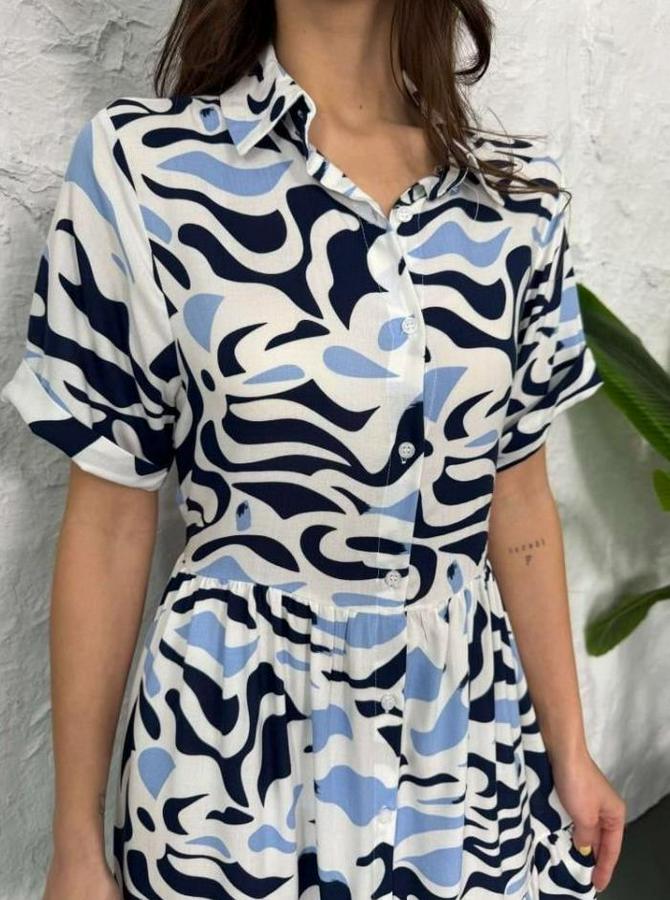 AnasayfaTüm ÜrünlerElbiseBaskılı Keten Elbise