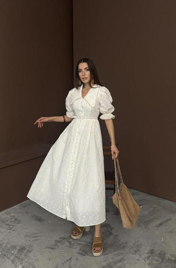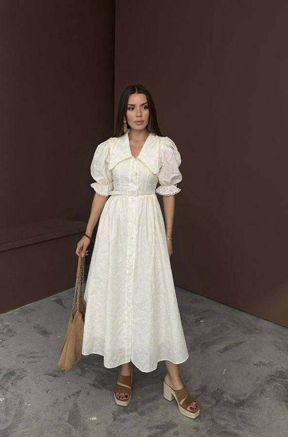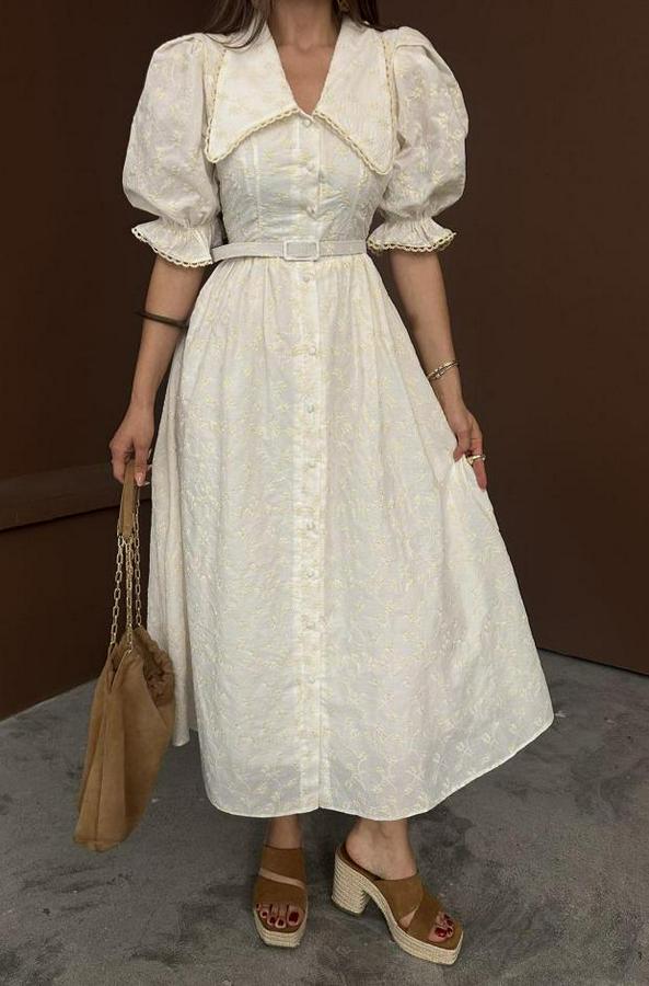 AnasayfaTüm ÜrünlerElbiseBej Bebe Yaka Balon Kollu Brode Elbise