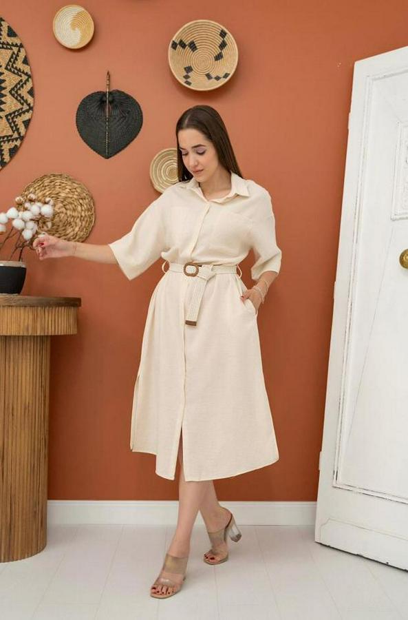AnasayfaTüm ÜrünlerElbiseBej Kemerli Elbise