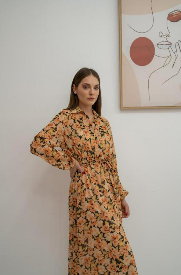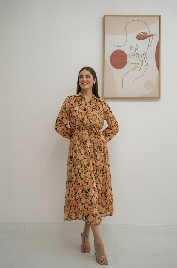 AnasayfaTüm ÜrünlerElbiseBej Kuşaklı Şifon Elbise