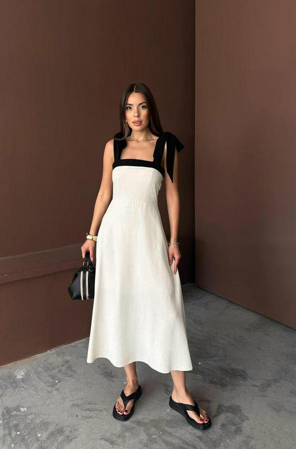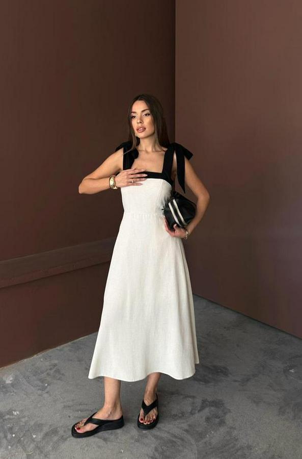 AnasayfaTüm ÜrünlerElbiseBej Omuzdan Bağlamalı Keten Elbise