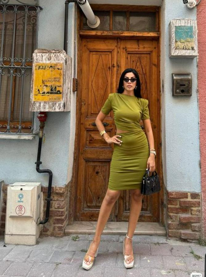 AnasayfaTüm ÜrünlerElbiseBel Dekolteli Yanı Büzgü Detay Dalgıç Krep Kumaş Mini Elbise