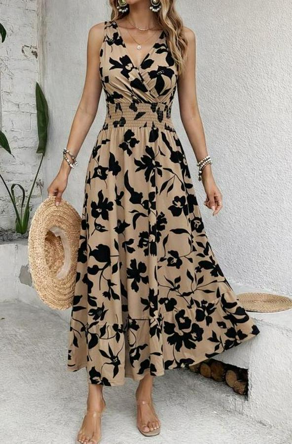 AnasayfaTüm ÜrünlerElbiseBeli Gipeli Etnik Desen Sıfır Kol Süprem Elbise