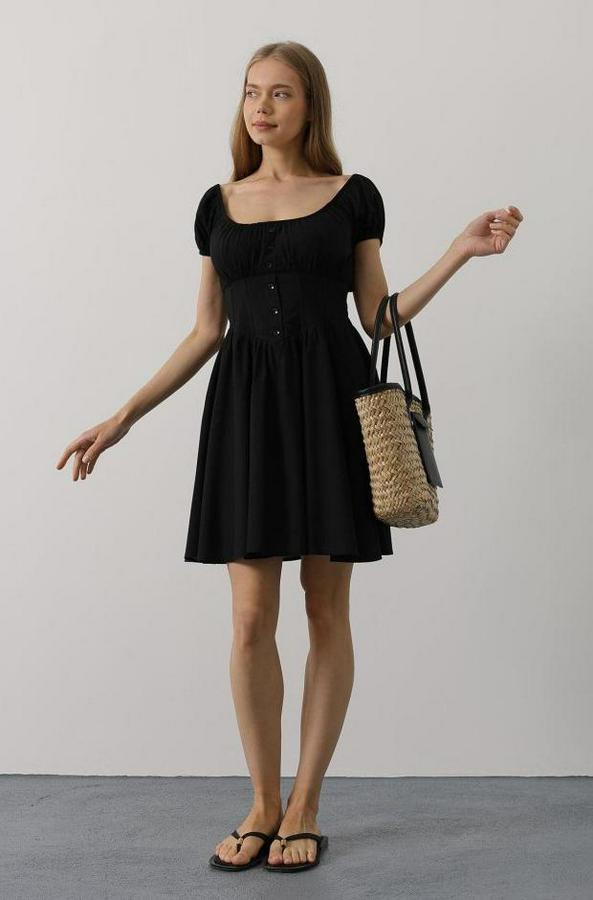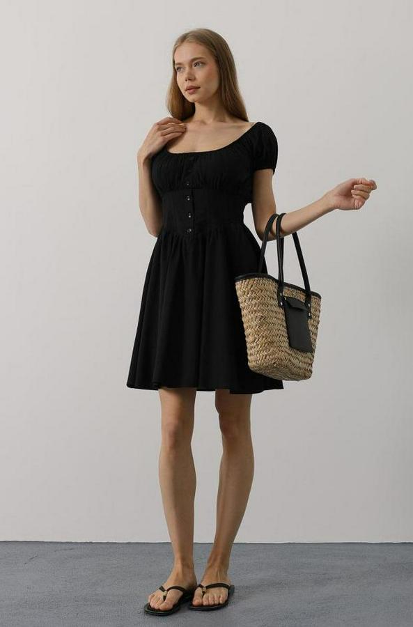 AnasayfaTüm ÜrünlerElbiseBeli Korseli Mini Elbise